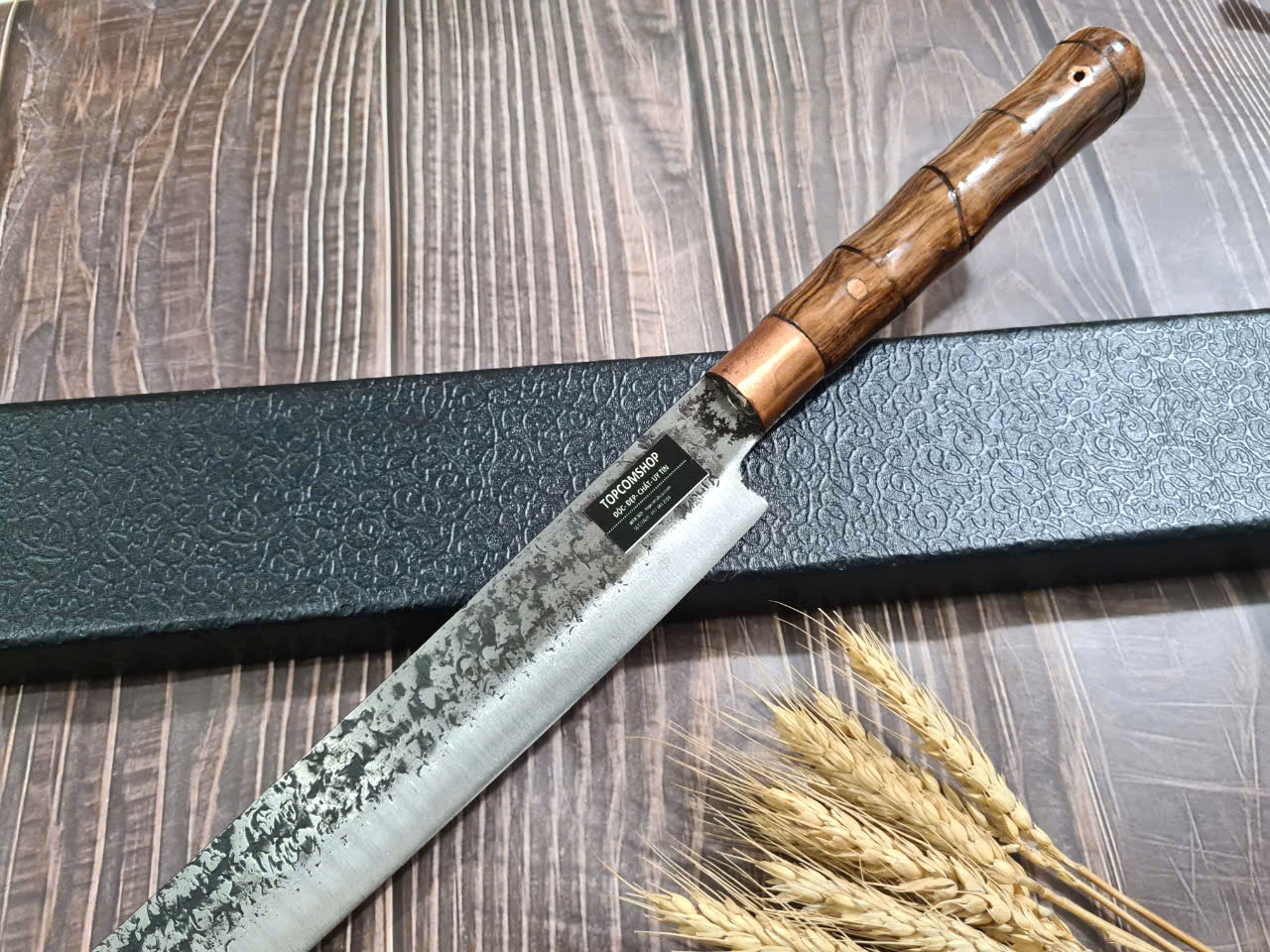 **** DAO BẾP SASHIMI MUĨ VÁT MÃ N53 : TỔNG DÀI : 45cm, LƯỠI: 30cm,RỘNG : 4cm, dày: 2.5mm, CHẤT liệu lưỡi: thép IFA cao cấp Chất liệu CÁN: gỗ cẩm chỉ, Các phụ kiện ( khâu ) : đồng thau NẶNG : 3 lạng