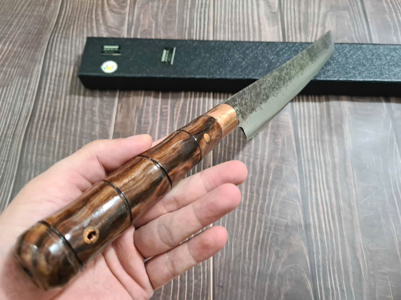 • Chất liệu: Thép Nhật 420J2, độ cứng 53HRC – siêu bền, chống gỉ • Lưỡi dao: Dày 2.5mm, sắc bén, hoàn thiện bằng đá mài nước • Tay cầm: Gỗ Pakka sang trọng, chống