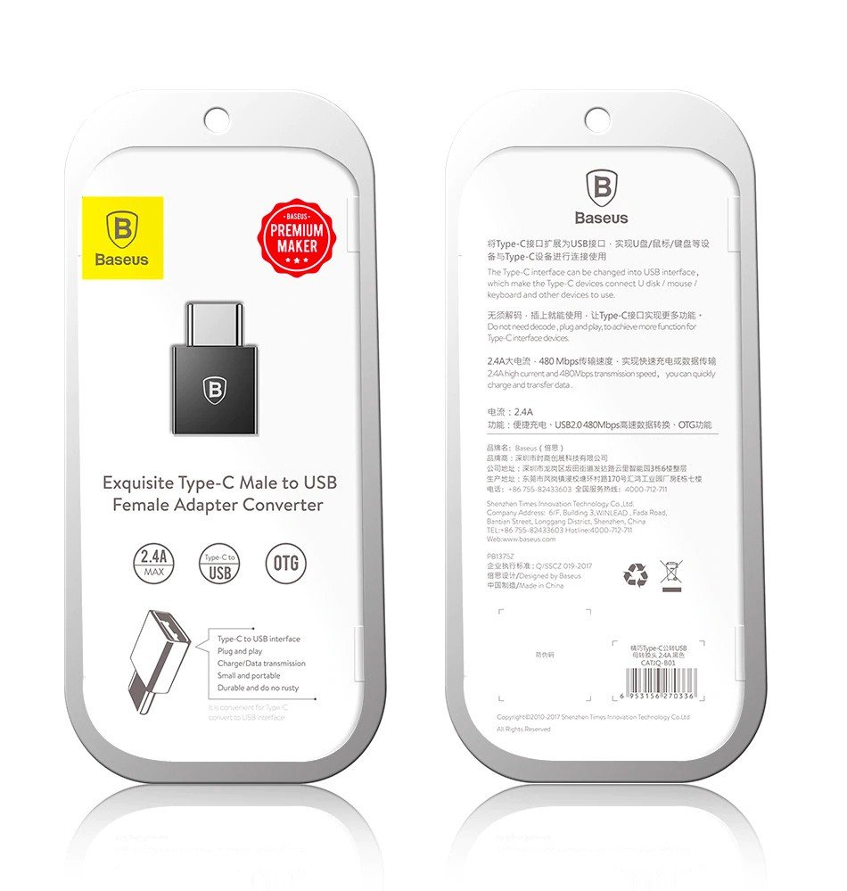 - Đầu chuyển OTG USB Type C sang USB 2.0 Full size Baseus dùng cho máy tính bảng Nokia N1, Apple Macbook Retina 12inch, Macbook pro 2016, các smartphone như Galaxy S8/ S8 Plus , Note7/ Note 8, Sony Xperia XZ, Galaxy A8 2018 ,Lumia 950, LG G5, HTC 10 chuyển đổi từ cổng USB-C sang cổng USB 2.0 thông dụng, giúp kết nối với thiết bị ngoại vi như bàn phím, chuột, USB, ổ cứng di động, máy in, hay các hub chia USB để tăng khả năng chia sẽ với các thiết bị khác mà không cần thông qua máy tính.