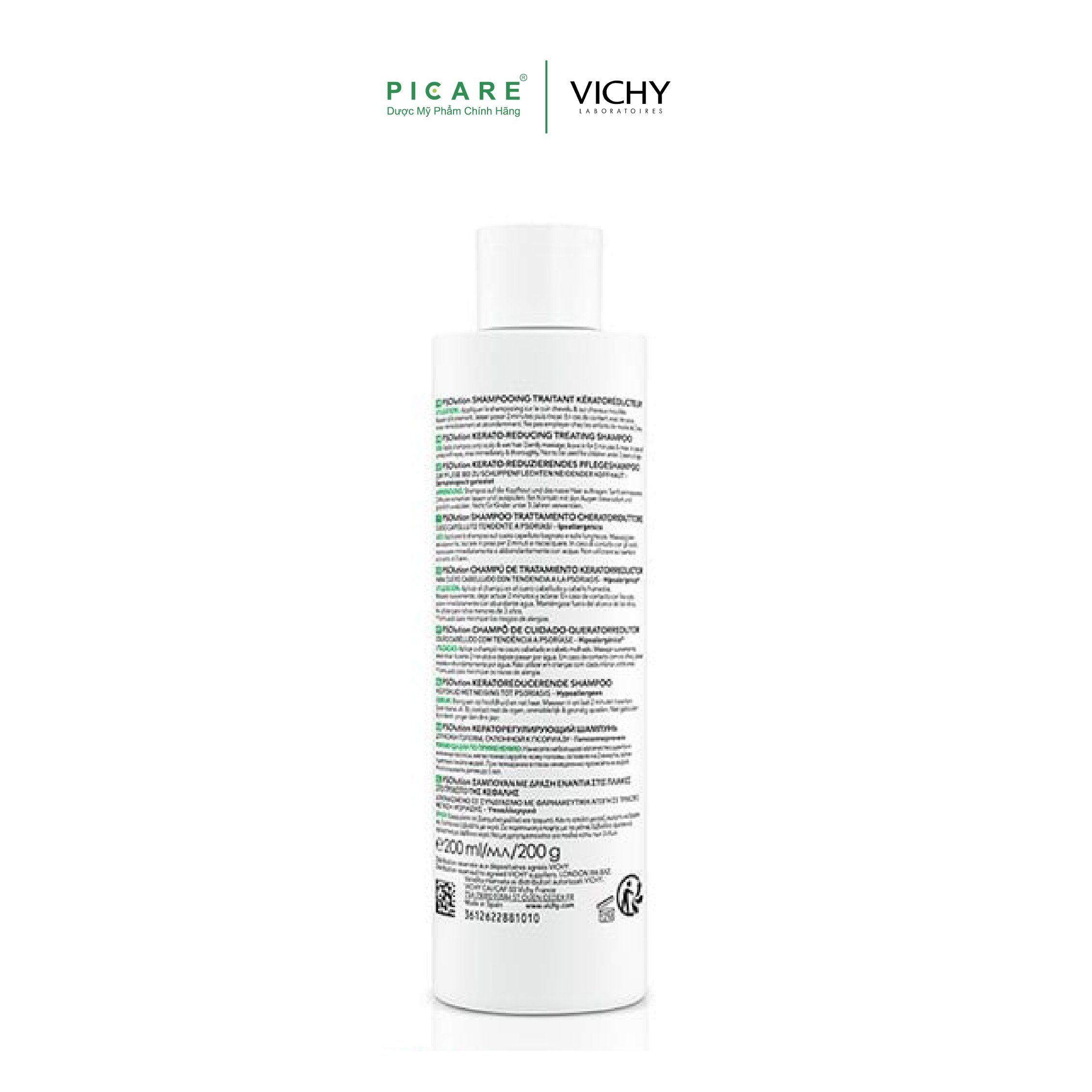 Dầu Gội Vichy Giảm Tình Trạng Bong Tróc Cho Da Đầu Gàu Và Ngứa Dercos PSOlution Keratoreducing Treatment Shampoo 200ml với 5% urê và 2% axit salicylic được phát triển để làm sạch và làm dịu da đầu, giảm ngứa và giảm bong tróc.