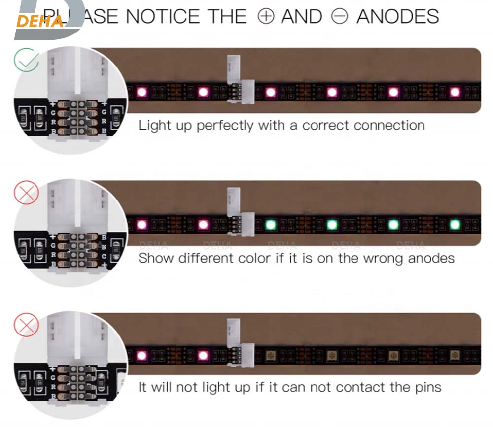 Đầu nối chữ thập, chữ X, dấu cộng + 4 chân cho led dây dán 5050, 2835, 3528 RGB đổi màu connector 4P pin 10 mm trang trí dán tường thạch cao, cây máy tính, màn hình, ti vi, TV, Gaming, Tiktok dán tường, chống nước bền đẹp- Chính hãng DEHA - Đầu nối góc chữ L dùng nối đoạn bo góc vuông thẩm mỹ cho mạch led dây dán 2835/ 5050/ 3528 RGB - Một bộ gồm: 1 mạch điện chữ thập + 4 đầu