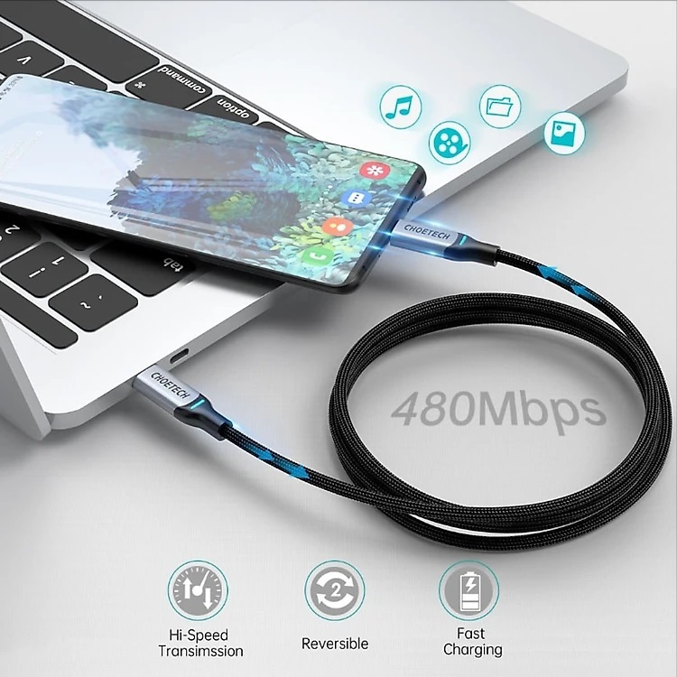 Dây cáp sạc nhanh 100W Type-C to Type-C chuẩn PD 3.0 hiệu CHOETECH XCC-1002-GY Đạt tốc độ truyền tải sắp xỉ 10Gpbs, bạn sẽ nhanh chóng truyền đi 1GB dữ liệu chỉ trong 1 cái chớp mắt. Tốc độ nhanh chưa từng có hiện nay 480Mbps