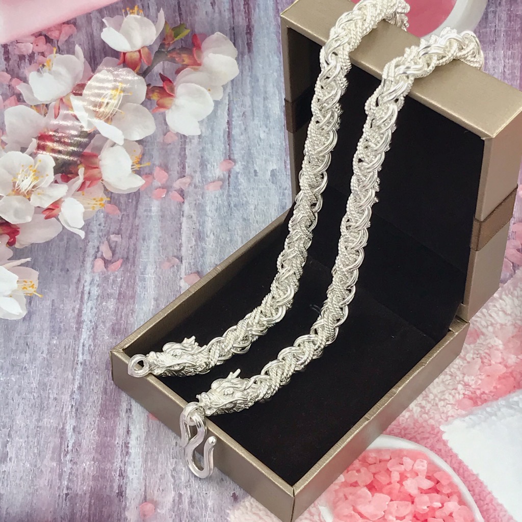 Vòng Cổ Dây Chuyền Nam Bạc Ta 925 Hình Rồng Kiểu Chỉ Se Loại To Nam Tính BẠC HIỂU MINH DBN041XL