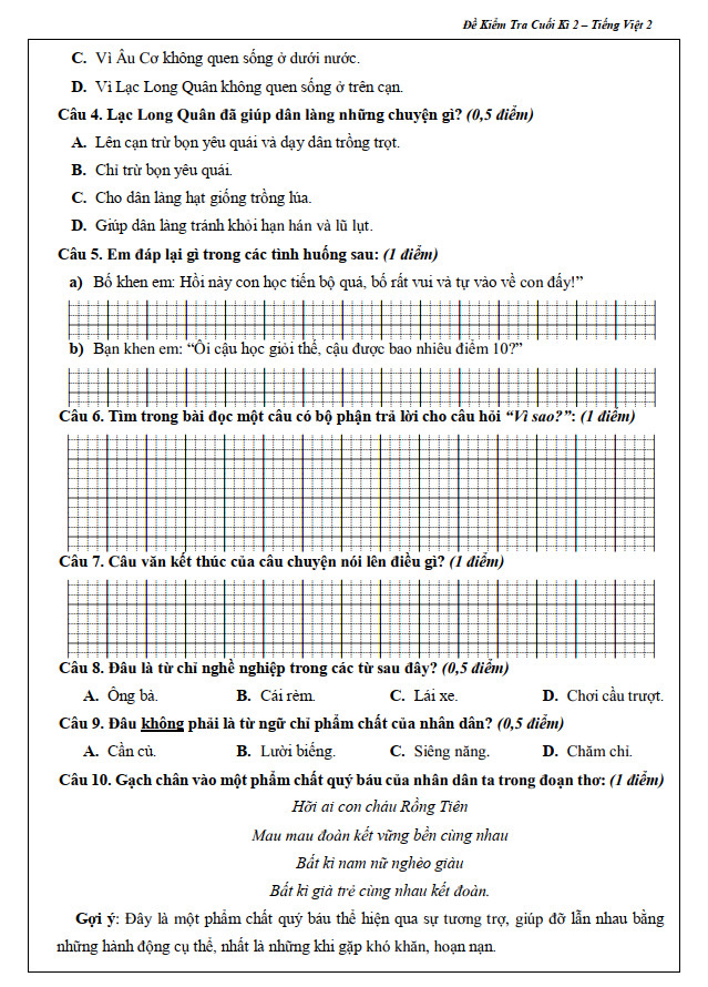 Đề Kiểm Tra Tiếng Việt 4 - Tập 2 là bộ gồm 5 đề giữa kì và 15 đề cuối kì theo chương trình sách giáo khoa hiện hành lớp 4.