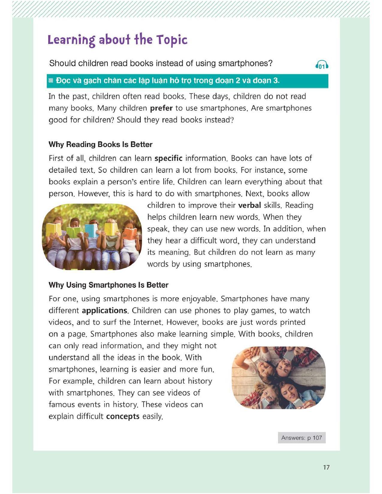 Lượng từ vựng và kiến thức nền theo chủ đề đa dạng, phong phú, giúp người học vừa nâng cao kiến thức bản thân, vừa phát triển năng lực ngôn ngữ toàn diện trên 4 kỹ năng Nghe – Nói – Đọc – Viết