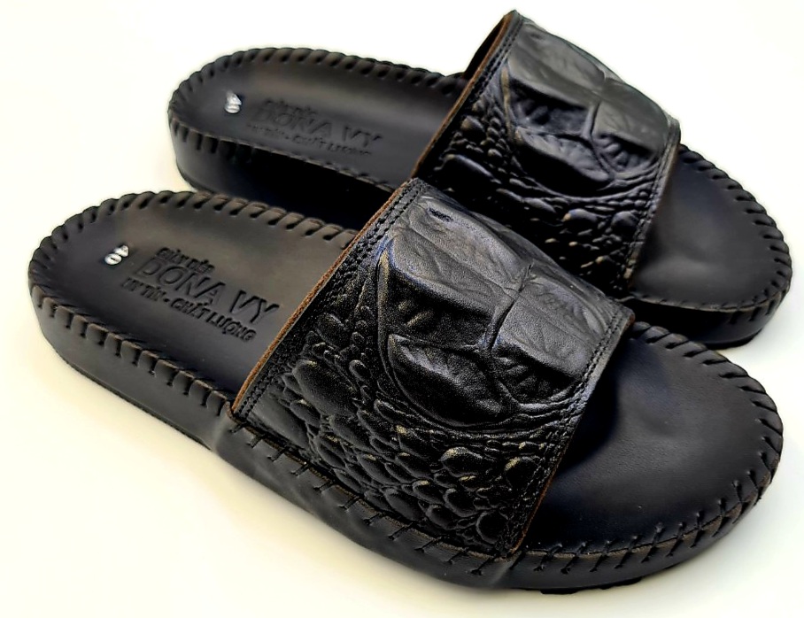 - Dép nam Huy Hoàng được làm từ chất liệu da cá sấu cao cấp nên càng sử dụng lâu bề mặt sẽ càng bóng đẹp tự nhiên. Da cá sấu mềm mại sẽ hạn