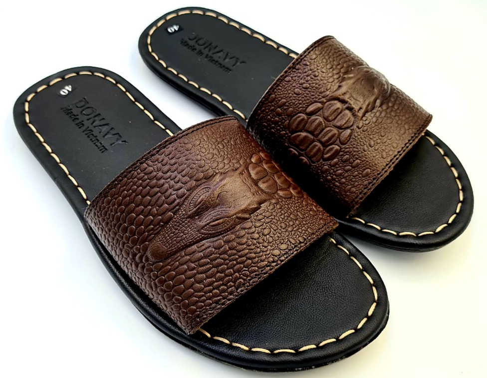 Dép Quai Ngang Nam Da Bò Thật 100%,DONAVY Kiểu Đầu Cá Sấu Đi Rất Nhẹ Và Êm DCSDN Chất liệu: Da bò thật 100% da bò tự nhiên Đế cao su tốt đi siêu êm,