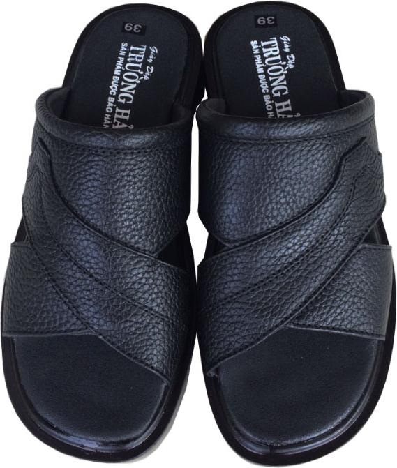 Dép nam quai ngang da bò Trường Hải đế cao 3.5cm