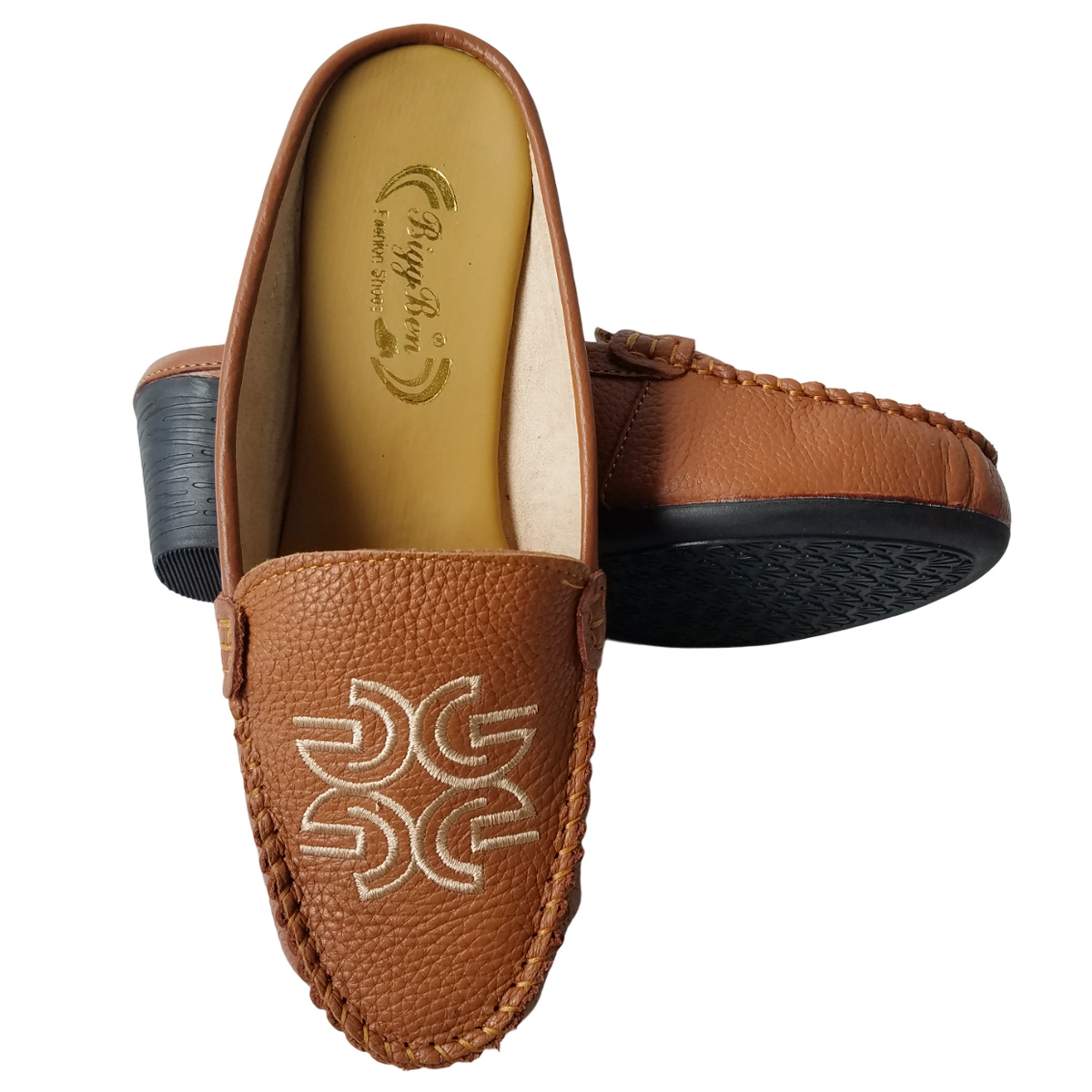 Giày Sục Nữ Giày Cao Gót 3Cm Da Bò Thật Siêu Mềm Cao Cấp Evelynv 3P2916 (Đen)