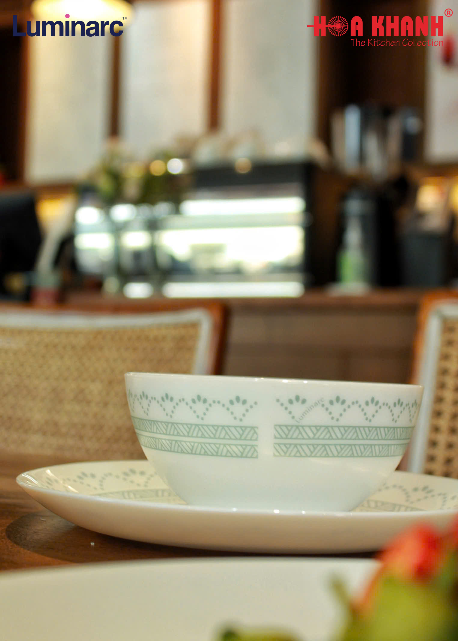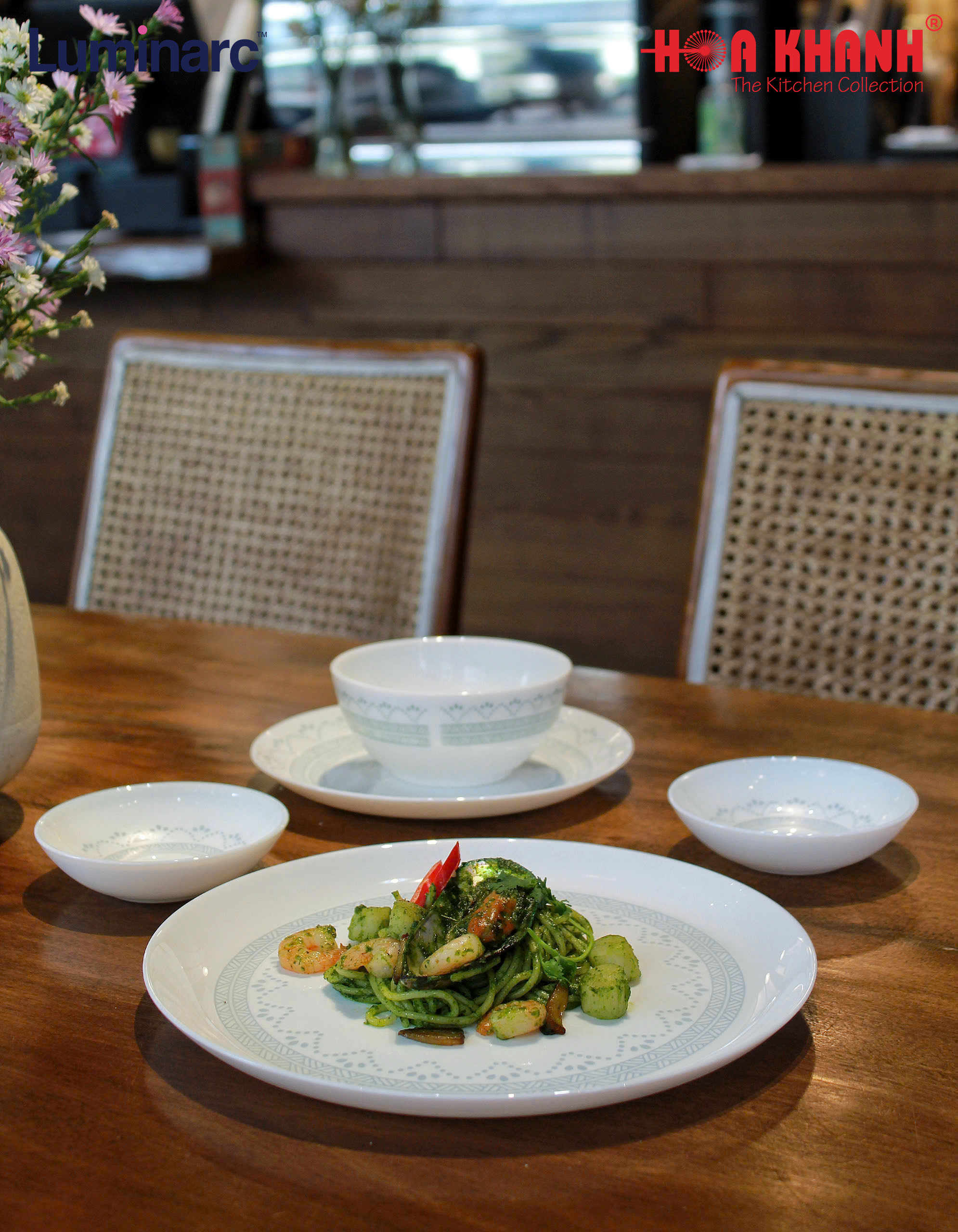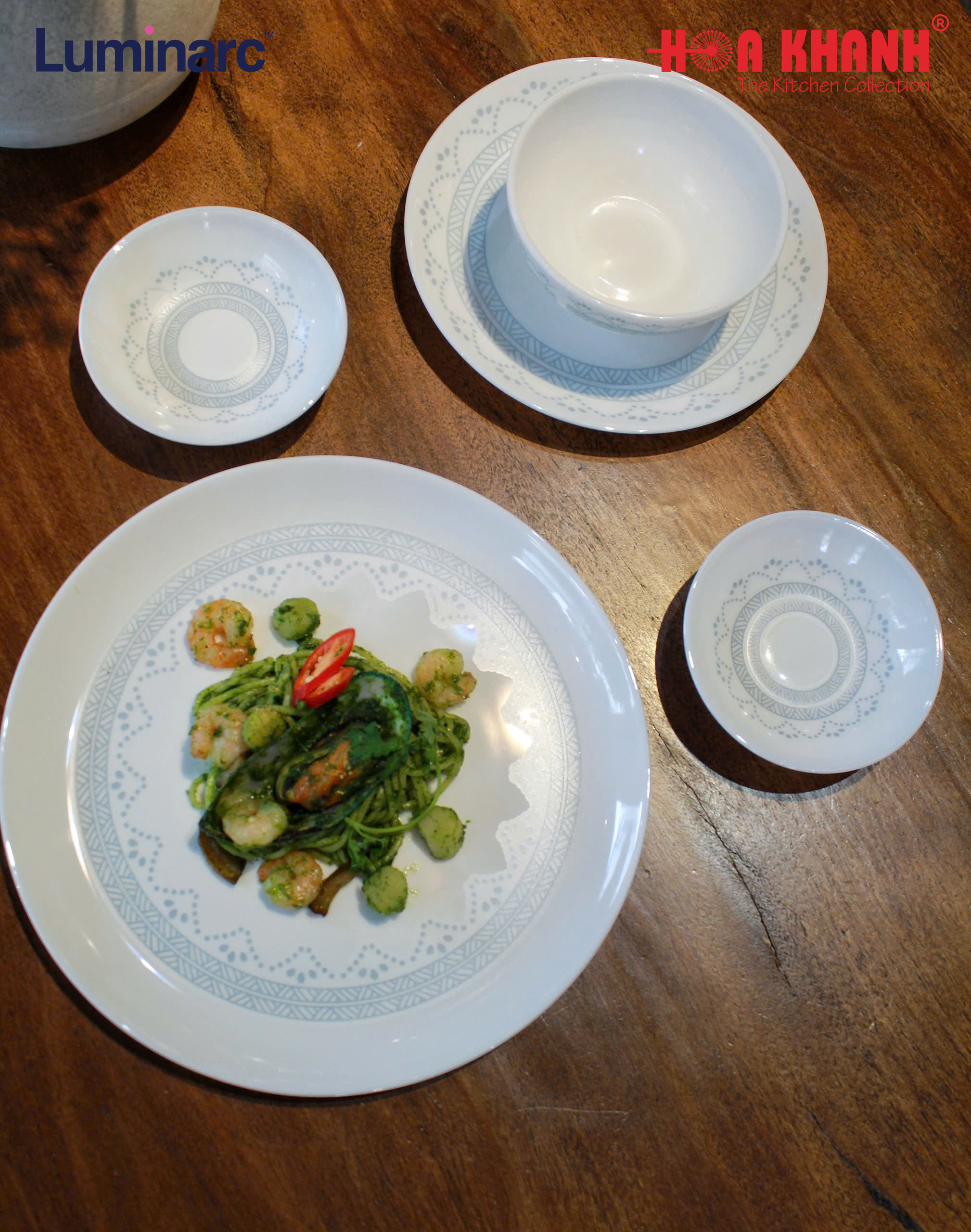 Thiết kế hình tròn sâu cùng họa tiết xanh nhạt đối xứng lặp đi lặp lại, đĩa thủy tinh luminarc diwali sâu đường kính 20cm thích hợp để đựng các món xào hay những món ăn có nước sốt. Đĩa thủy tinh luminarc được sử dụng rộng rãi trong những bữa ăn gia đình hoặc trên các bàn tiệc ở quán ăn, nhà hàng, khách sạn,...