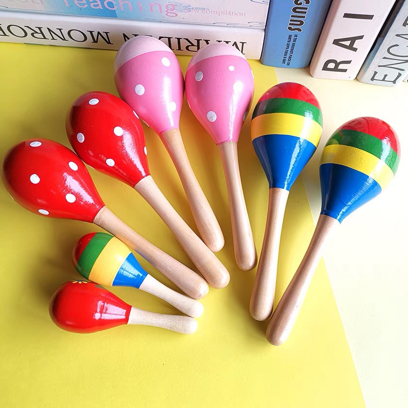 Đồ chơi âm nhạc trẻ em LỤC LẠC ( XÚC XẮC ) chuôi gỗ nhiều màu phát triển cảm quan cho bé từ 0 tuổi