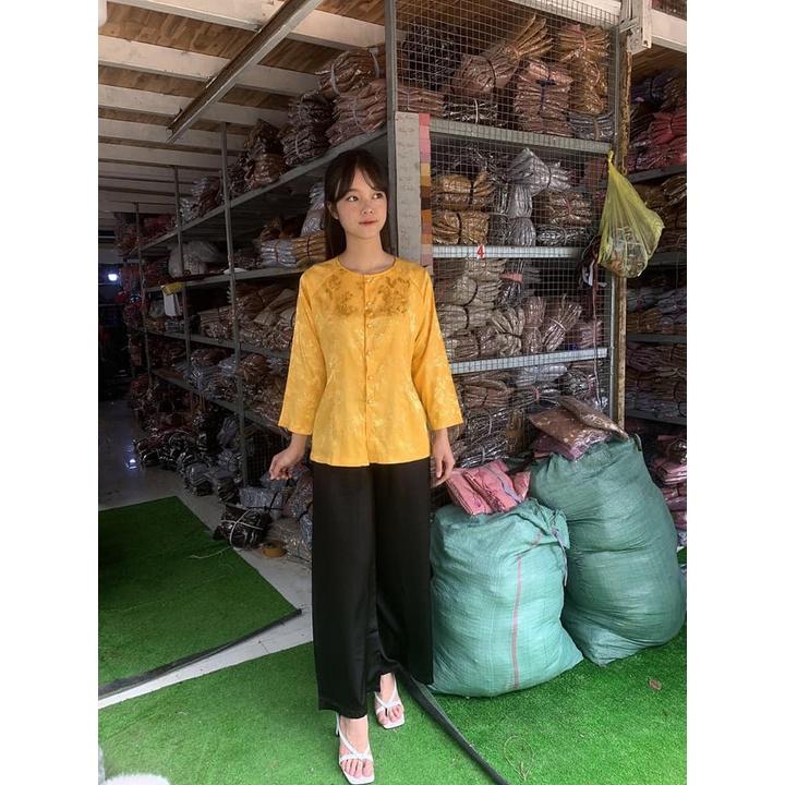 Chất Vải Lụa Pháp Cao Cấp Hoặc Vải Gấm Tuỳ Màu Và Size Nên Chất Vải Khác Nhau Quần Ống Rộng Cổ Áo Chui Không Cài Nút BÁN LẺ GIÁ SỈ Chú Ý Khi Đặt