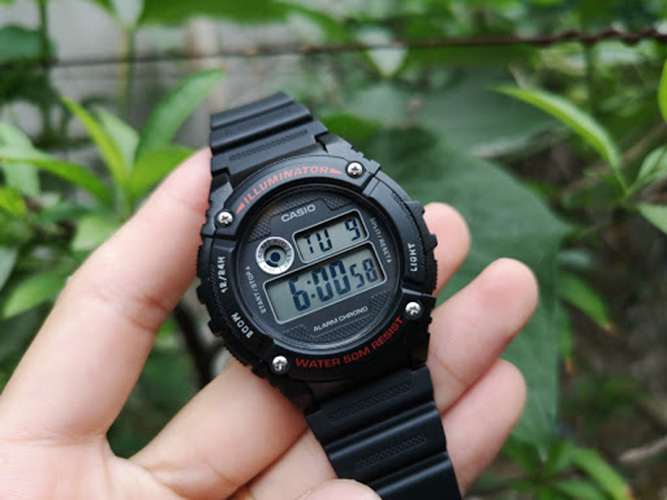 Đồng hồ Casio W-216H-1AVDF dây nhựa màu đen, mặt tròn điện tử, đồng hồ bấm giờ, báo thức.