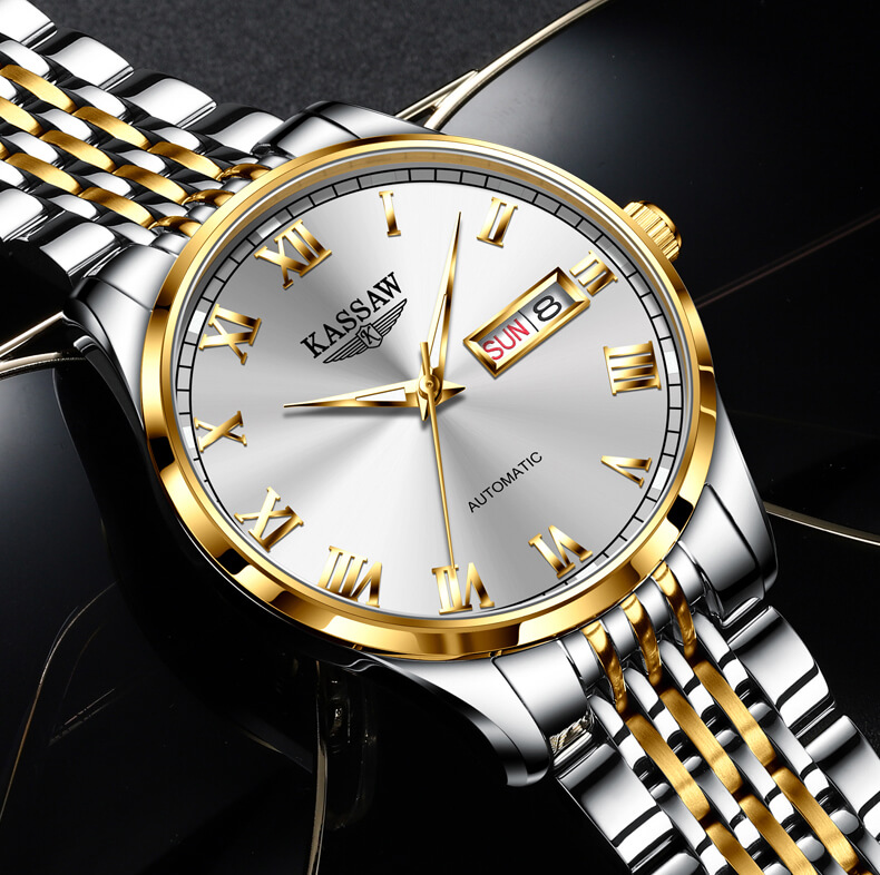 Đồng hồ nam chính hãng Kassaw Thụy Sỹ Thiết kế sang trọng, đẳng cấp cho quý ông Thời gian trữ cót lâu lên đến 40h Chống nước 5ATM, Kính sapphire Toàn bộ máy được làm từ thép không gỉ 316L Đồng hồ cơ Automatic, Sử dụng bộ máy Seiko NH35A Chính hãng Thương hiệu :Kassaw Mã sản phẩm : K956-1 Giới tính : Nam Kiểu máy : Automatic (Máy Cơ) Đường kính mặt : 39 mm Độ dày : 10 mm Chất liệu vỏ : Thép không gỉ 316L Chất liệu dây : Thép không gỉ 316L Chất liệu mặt : kính Sapphire Độ chịu nước : 5ATM