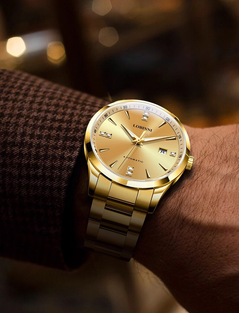 Đồng hồ nam chính hãng LOBINNI Thụy Sỹ Thiết kế sang trọng, đẳng cấp cho quý ông Thời gian trữ cót lâu lên đến 40h Chống nước 5ATM, Kính sapphire Toàn bộ máy được làm