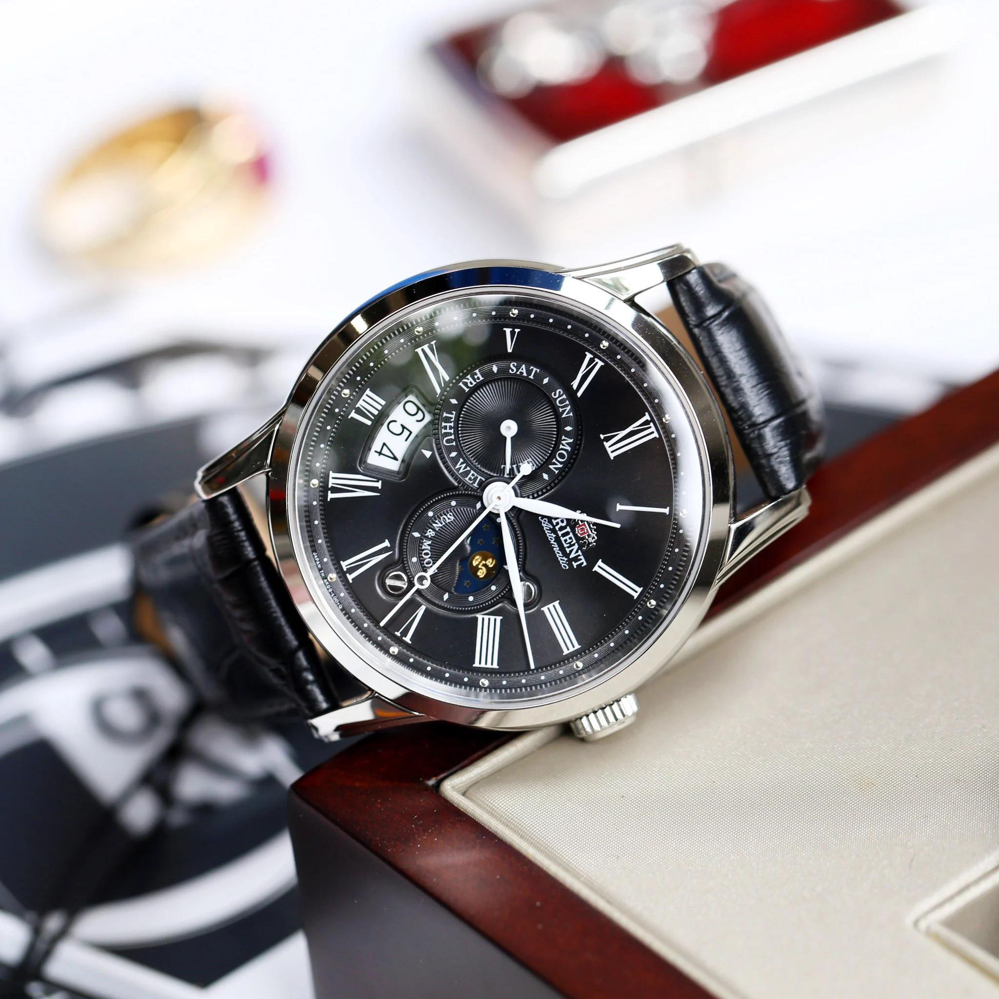 ✨Đồng Hồ Nam Dây Da Orient Automatic Sun And Moon RA-AK0010B10B