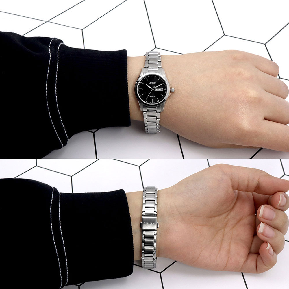 Các tính năng - Khả năng chống nước ở độ sâu 50 mét - Hiển thị ngày Đặc điểm kỹ thuật - - Vật liệu vỏ / vành bezel: Thép không gỉ - Chốt gập