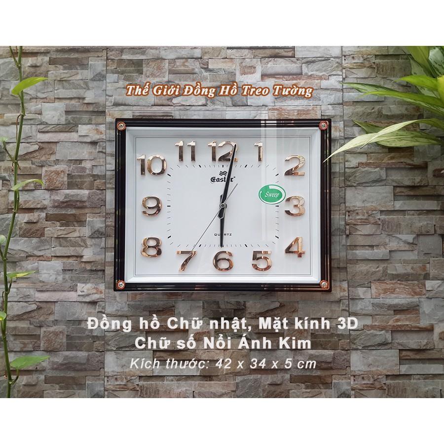 ✨Đồng hồ Treo tường EASTAR KIM TRÔI Chữ Nhật Mặt Trắng – Mặt Kính 3D – Bộ Số Nổi Ánh Kim Bạc – Tặng Pin Maxell