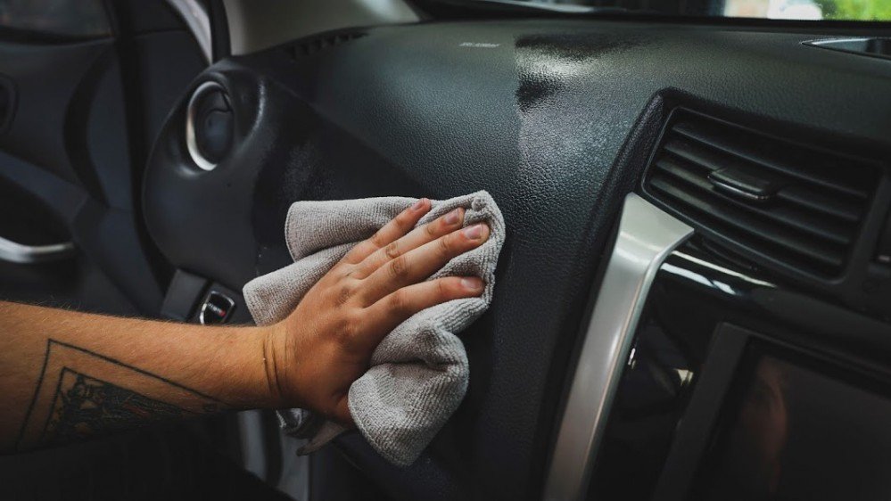 Bôi sản phẩm vào miếng vải Microfibre và lau lên bề mặt, tay nắm cửa, bảng taplo và các bề mặt khác.