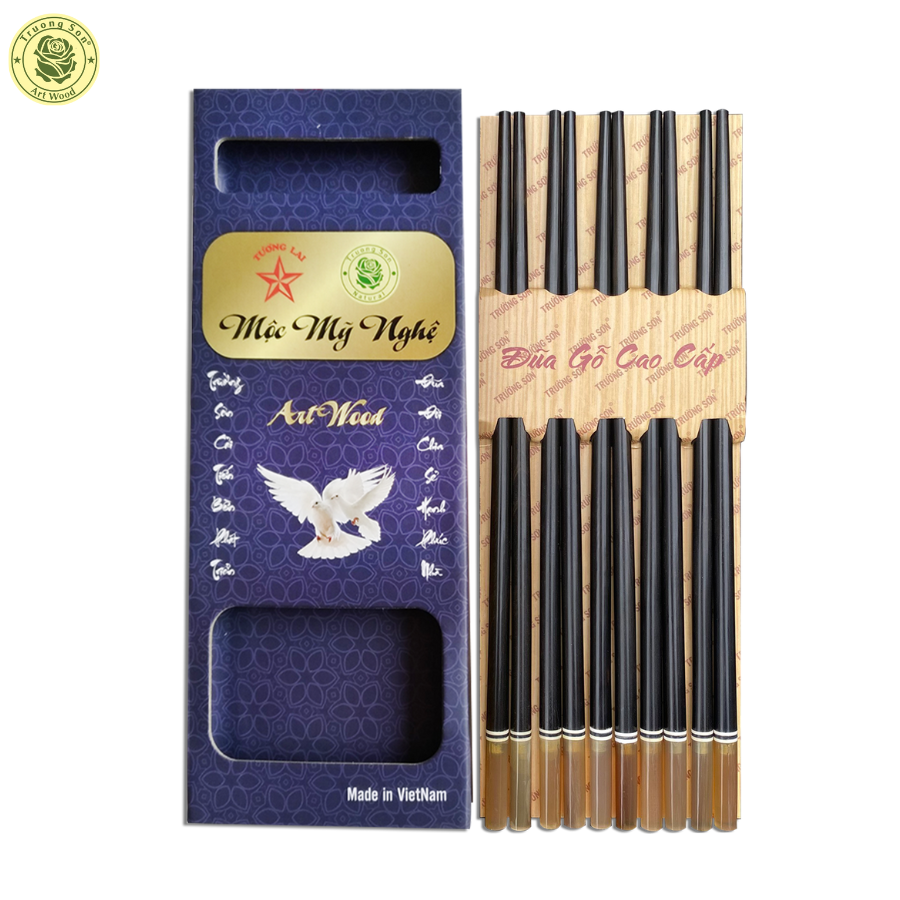 THÔNG TIN SẢN PHẨM Tên sản phẩm: Đũa Gỗ Cẩm Lai Ghép Sừng - thương hiệu Trường Sơn Kích thước đũa: 24 +/- 0.5 Cm Số lượng: 05 Đôi/ Hộp Hoặc 10 Đôi / Hộp