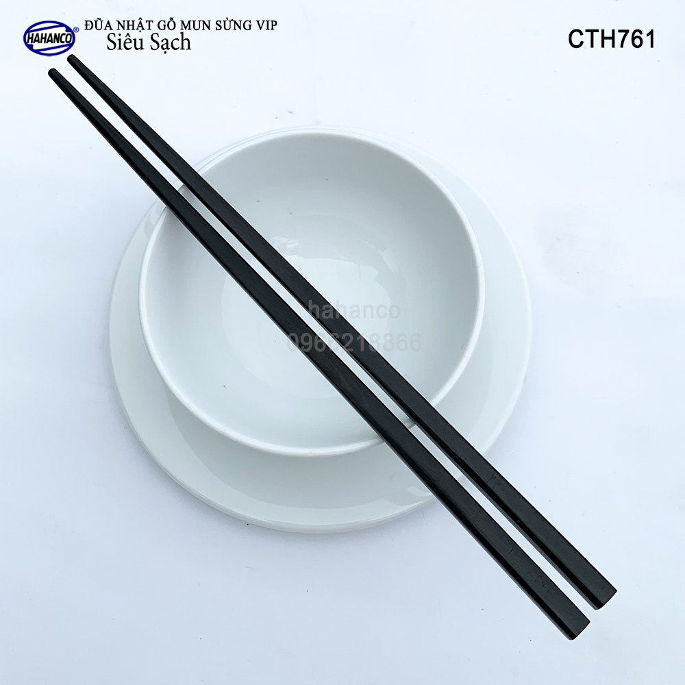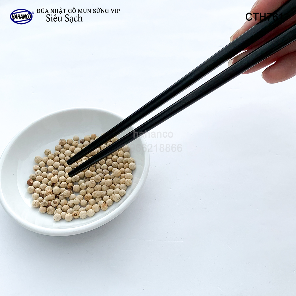 QUÝ KHÁCH CHÚ Ý: hiện nay rất nhiều cơ sở bán đũa giả gỗ Mun sừng, kém chất lượng, thường được làm bằng gỗ tạp và ngâm hóa chất nhuộm màu rất độc hại, nhưng vẫn ghi là đũa gỗ Mun sừng để đánh lừa người tiêu dùng. Để đảm bảo quyền lợi hãy chọn mua đúng đũa gỗ Mun sừng do CTy HAHANCO sản xuất