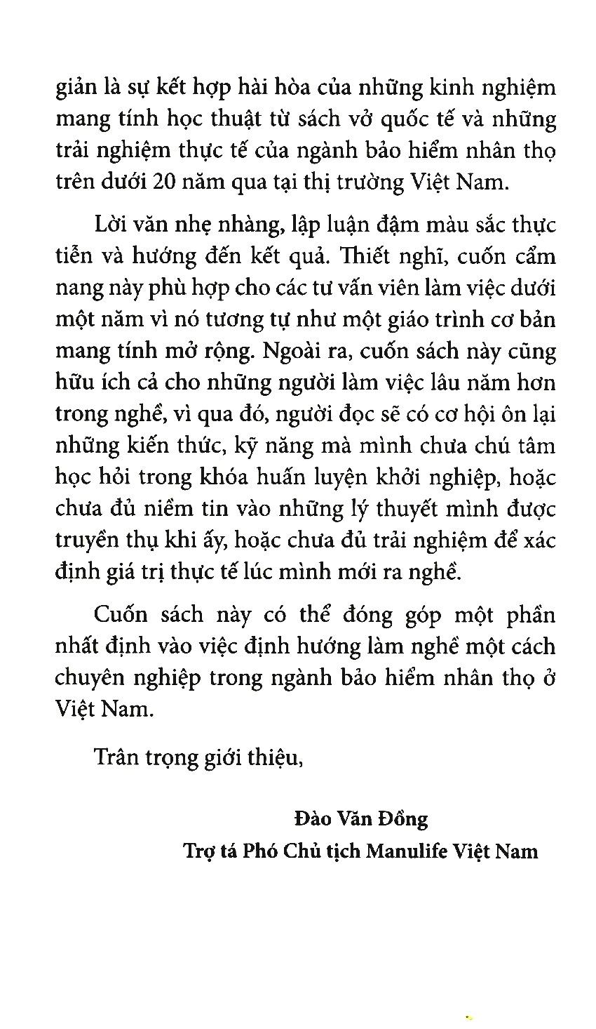 Cuốn sách này có thể đóng góp một phần nhất định vào việc định hướng làm nghề một cách chuyên nghiệp trong ngành bảo hiểm nhân thọ ở Việt Nam.
