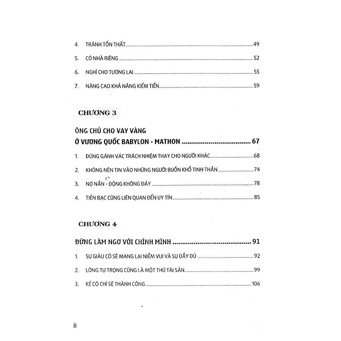 Mathon là một ông chủ cho vay vàng ở thành Babylon. Phương thức cho vay của ông tương tự với cách làm việc của các ngân hàng hiện nay. Hàng ngày, có rất nhiều người đến tìm Mathon để vay vàng. Tuy nhiên, cho vay giống như một phương pháp đầu tư, Mathon luôn cần hiểu rõ mục đích vay tiền cũng như đánh giá về khả năng trả nợ của đối phương thay vì cho vay một cách mù quáng. Cùng nhờ như vậy mà Mathon vừa giúp đỡ được những con người thực sự cần tiền để làm ăn, vừa có thể tránh được những rủi rõ tài chính không đáng có và khối tài sản của ông nhờ vậy cũng ngày càng nhiều lên.