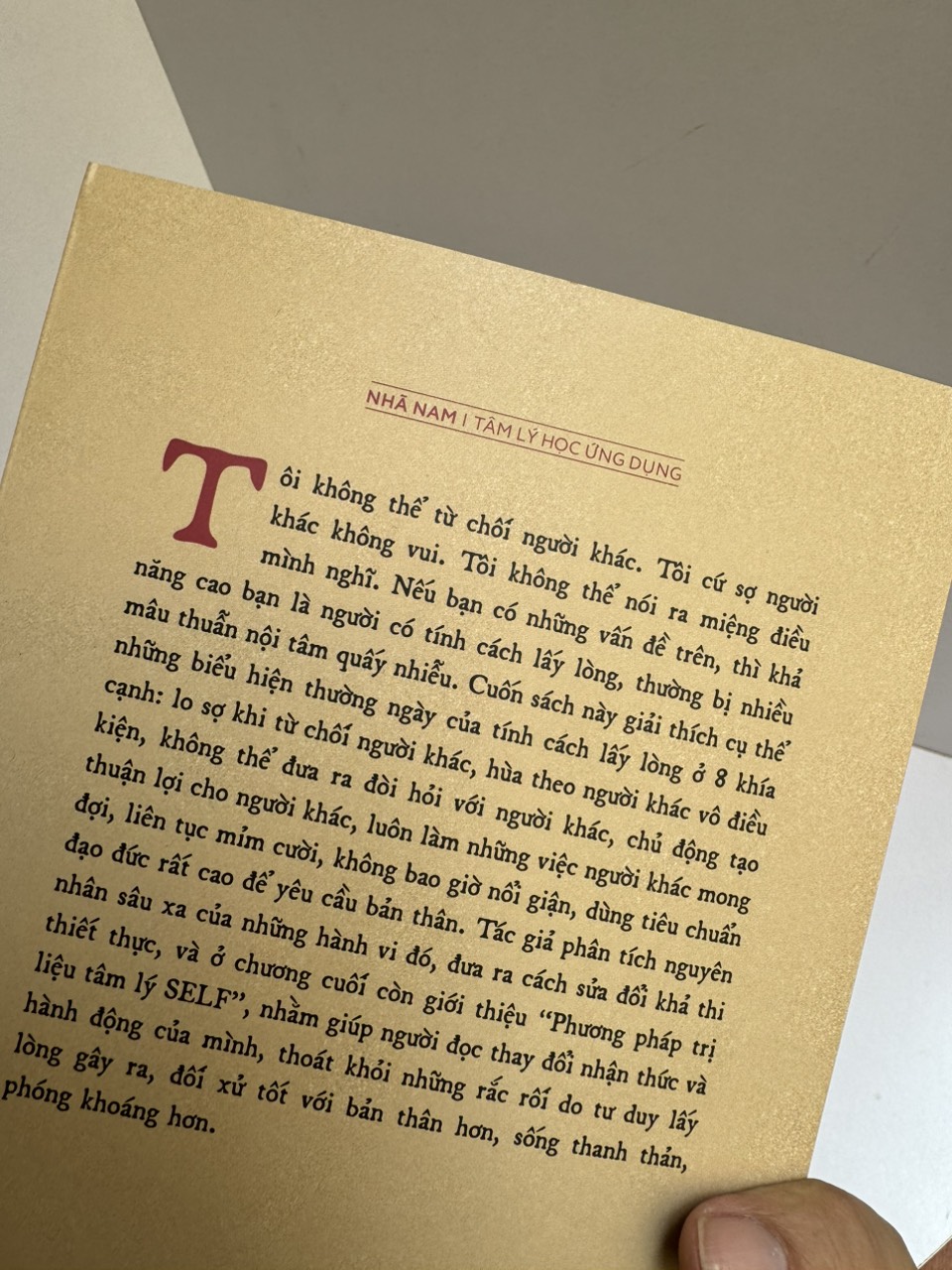 Cuốn sách này phân tích rõ những nguyên nhân sâu xa đằng sau những mô hình hành vi này, đồng thời cũng đưa ra những phương pháp thực tế để thay đổi. Trong chương cuối cùng của cuốn sách, tác giả còn giới thiệu về “Liệu pháp tâm lý SELF” với mục tiêu là “Tự cứu rỗi, sống hết mình”, liệu pháp này giúp độc giả thay đổi nhận thức và mô hình hành vi của bản thân trong cuộc sống sau này, thoát khỏi những rắc rối do tính cách lấy lòng gây ra.