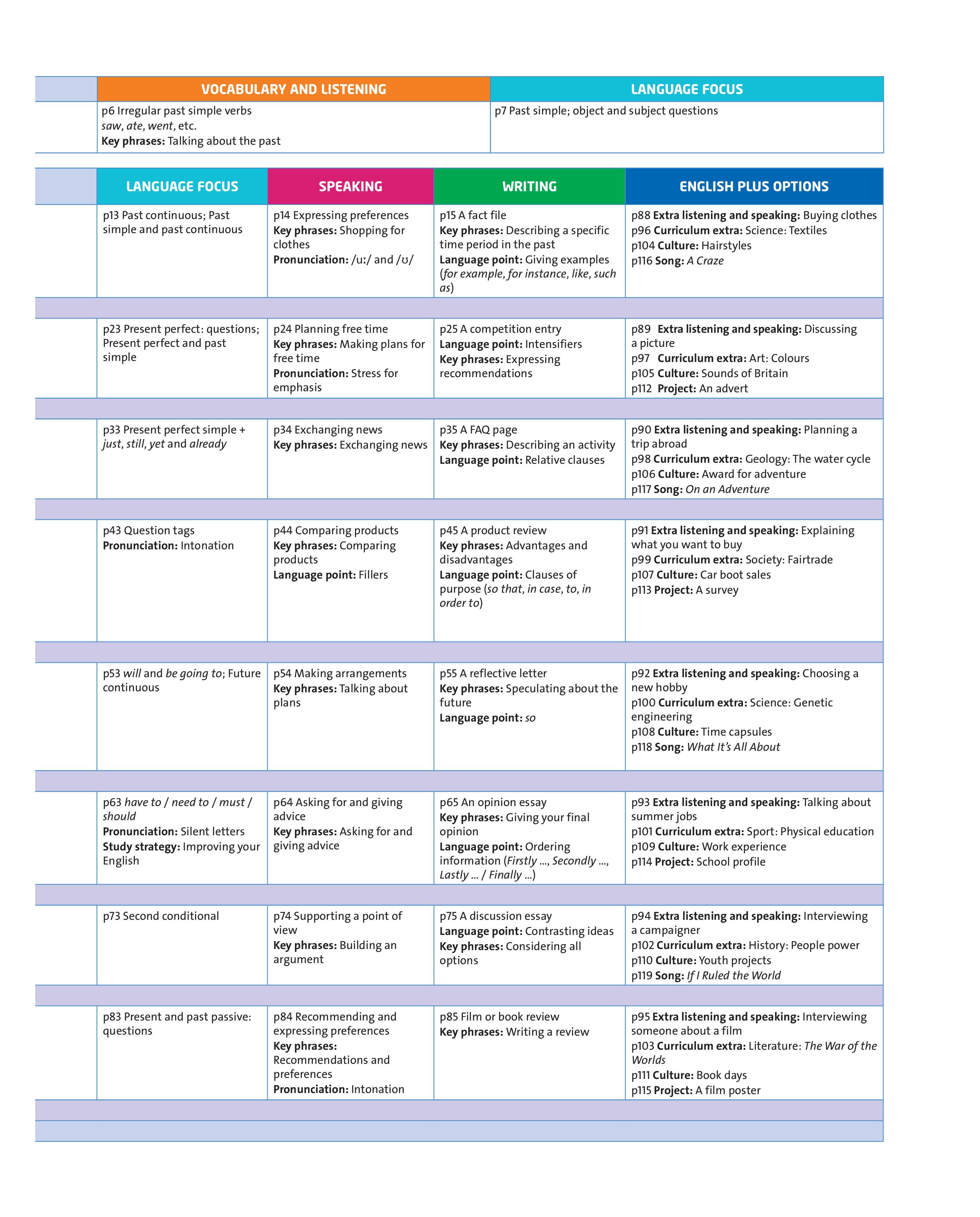 A strong communicative strand runs throughout the Student's Book with plenty of speaking exercises and an entire lesson dedicated to speaking and pronunciation skills.