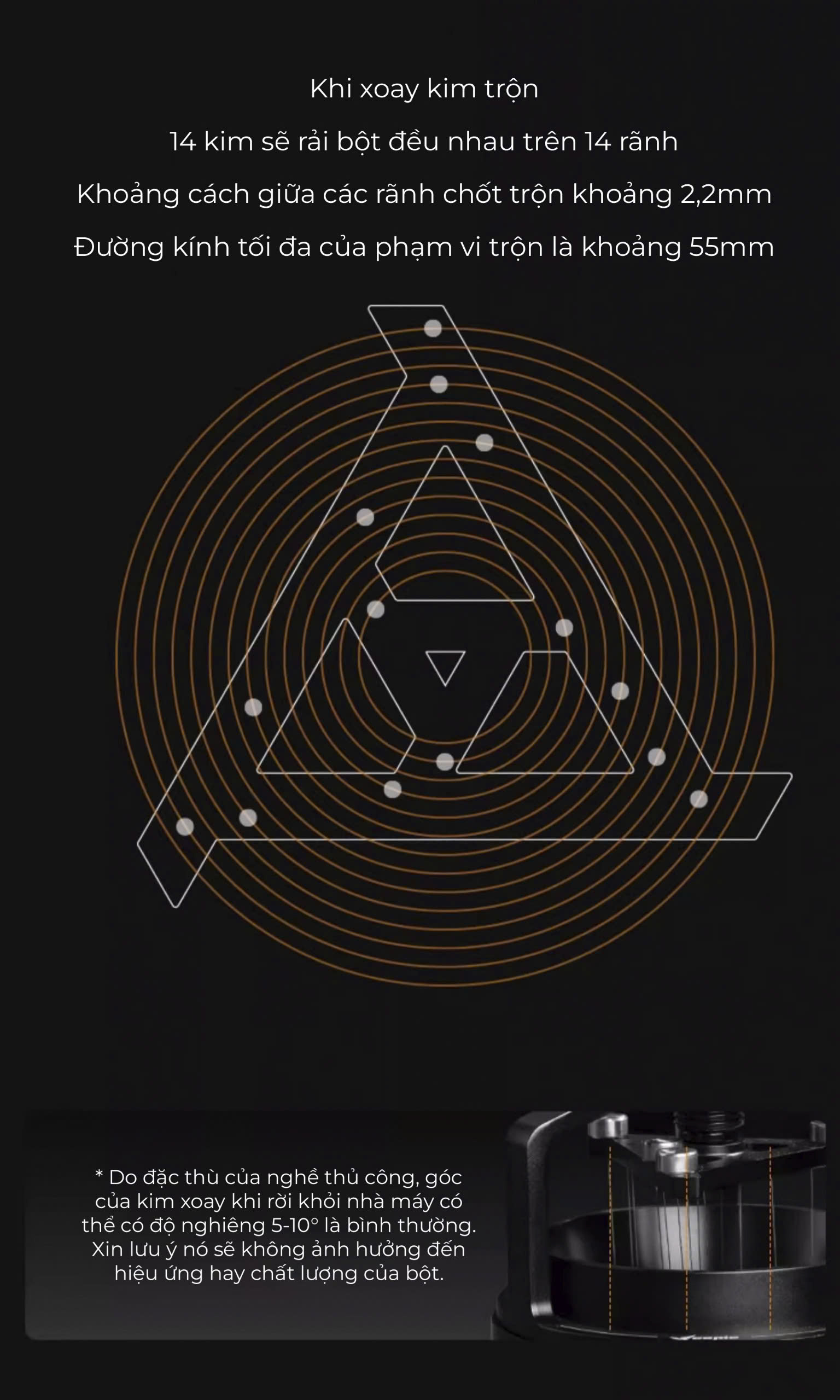 Việc sử dụng kim tán bột giúp giảm hiện tượng kênh nước (channeling), tăng cường độ đồng nhất của bột cà phê, từ đó tạo ra một ly espresso có hương vị đậm đà, cân bằng và trọn vẹn hơn.
