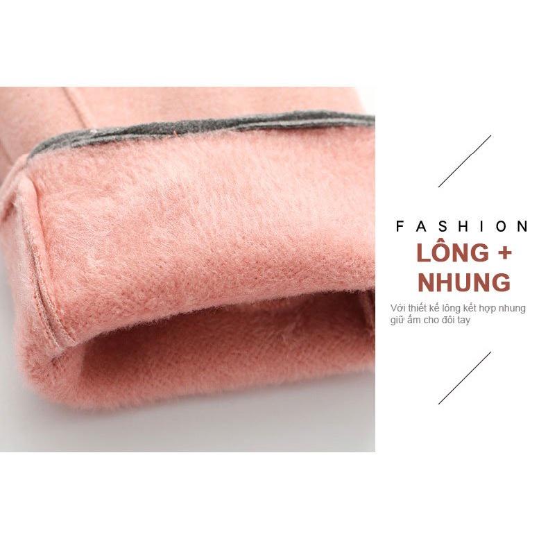 Găng tay nữ cảm ứng lót nỉ siêu ấm mùa đông- gang tay nu cam ung lot ni am mua dong