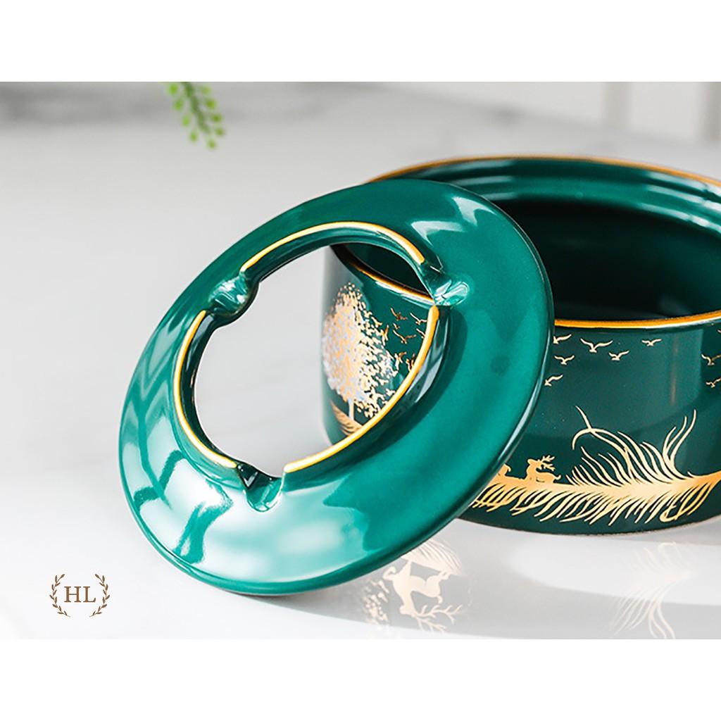Gạt tàn gốm mạ vàng 18k cao cấp không thể thiếu trong không gian nhà bạn Kích thước: 15 x 15 x 15cm Mạ vàng 18k rất sang trọng và đẹp mắt Thiết kế nắp