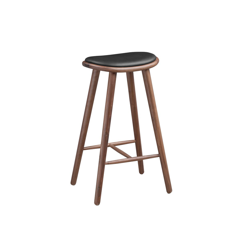 Ghế quầy bar Napoli gỗ cao su sơn màu walnut, nệm PVC đen Ghế đảo bếp cao 650. Size: 470460750