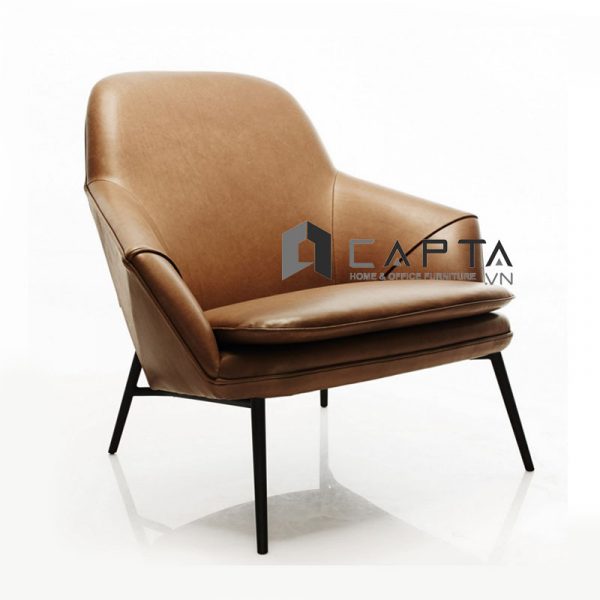Ghế thư giãn đọc sách HUG ARM Nội thất Capta Ghế ngồi thư giãn nệm da PVC màu nâu da bò chân thép sơn tĩnh điện Lounge Chair