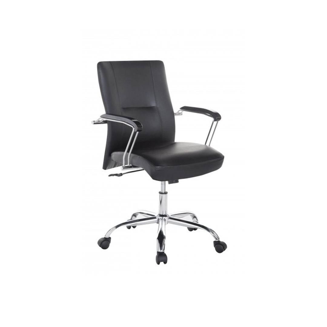 Ghế văn phòng lưng trung nhập khẩu CE4311-MP - Chất liệu: Lưng trung lưới, nệm PVC. Khung lưng thép mạ chrome Tay vòng thép mạ ốp PU. Chân thép mạ chrome cao cấp. - Kích