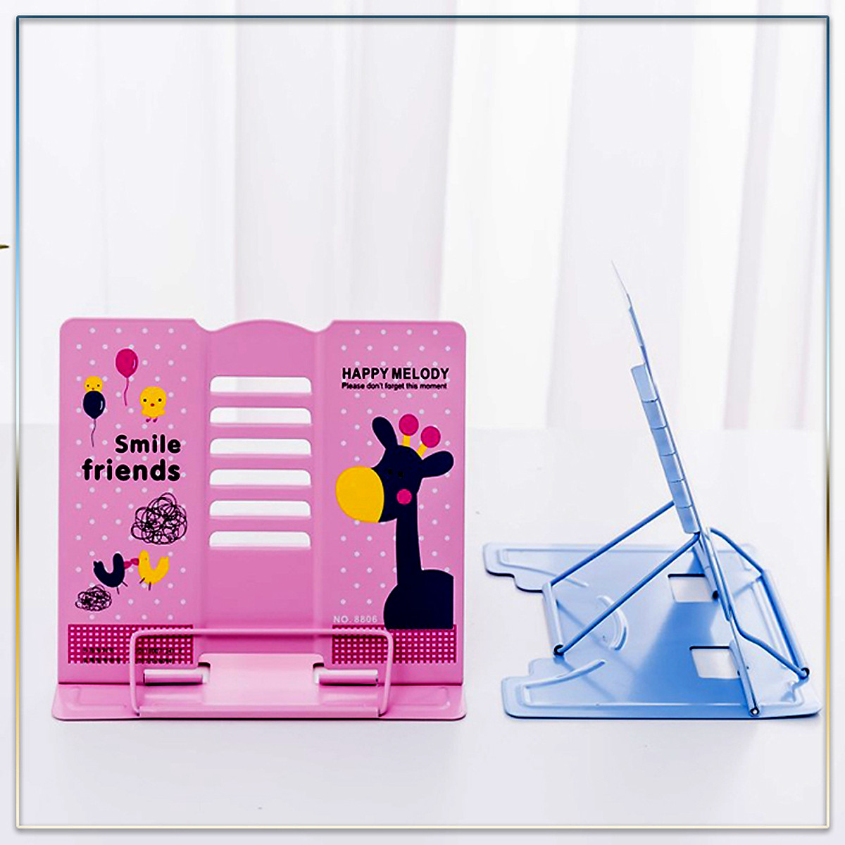 Giúp điều chỉnh khoảng cách từ mắt tới sách vở cho phù hợp, chống cận thị cho bé Chất liệu bằng Inox mạ màu chắc chắn, được phủ một lớp sơn đẹp mắt với nhiều màu sắc dễ thương, gần gũi với con trẻ. Có nấc chỉnh độ nghiêng, tạo thuận lợi tối đa trong quá trình học tập của bé. Chất liệu: Kim loại phủ sơn. Kích thước: 20x20 cm nhỏ gọn và rất chắc chắn, kẹp được tất cả những quyển sách từ nhỏ đến lớn, dày hay mỏng. Hình vẽ sống động, họa tiết bắt mắt cho bé.