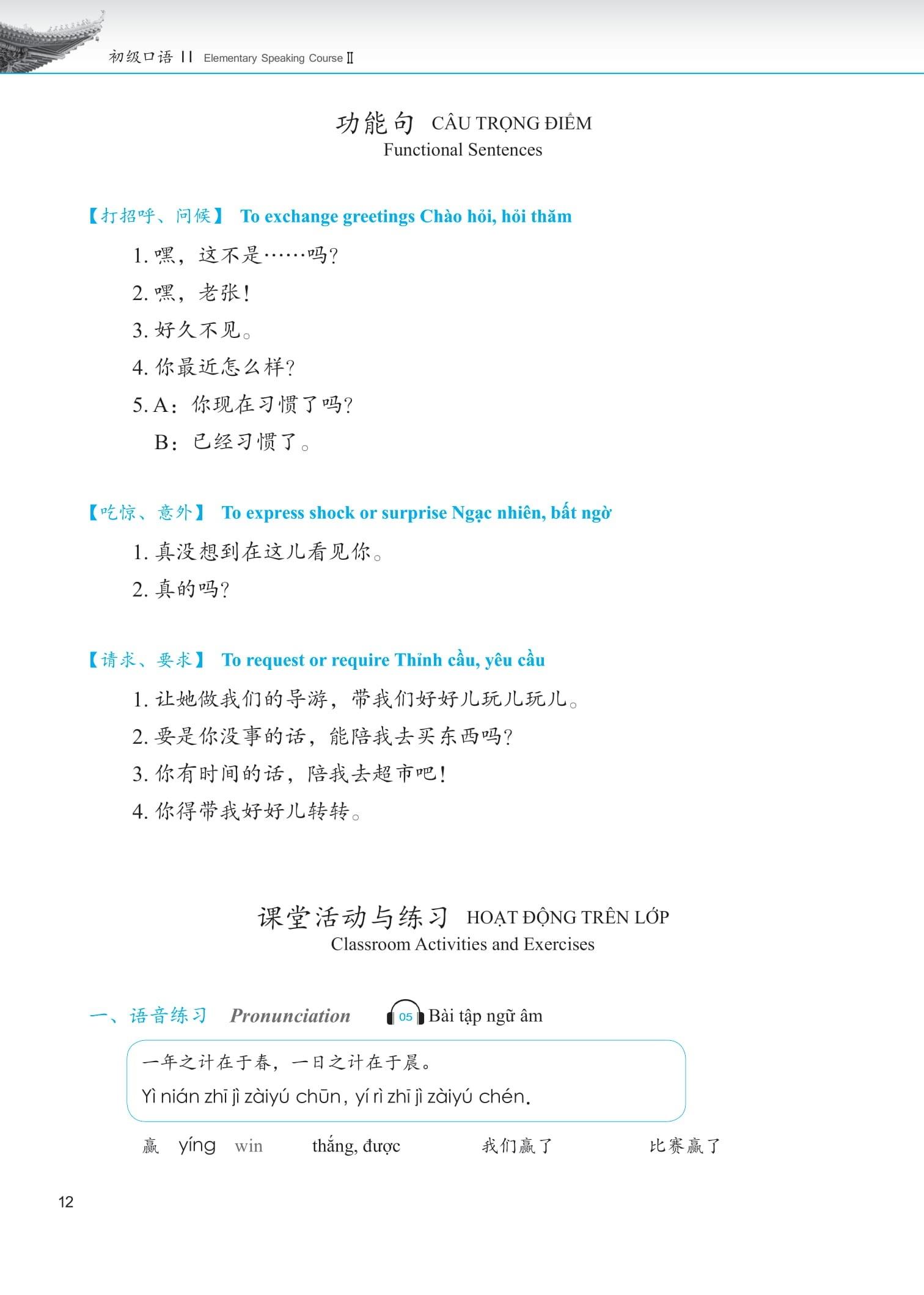 Giáo trình Phát triển Hán ngữ Nói - Giao tiếp sơ cấp 1 chủ yếu dùng cho người học tiếng Trung ở cấp độ sơ cấp (bao gồm mới bắt đầu). Bên cạnh đó, cuốn sách này có thể chọn dùng cho giảng dạy sinh viên chính quy chuyên ngành ngôn ngữ Trung Quốc, làm tài liệu tham khảo cho giáo viên hay cũng có thể dùng cho các khóa bồi dưỡng trong và ngoài nước và cho người tự học tiếng Trung Quốc.