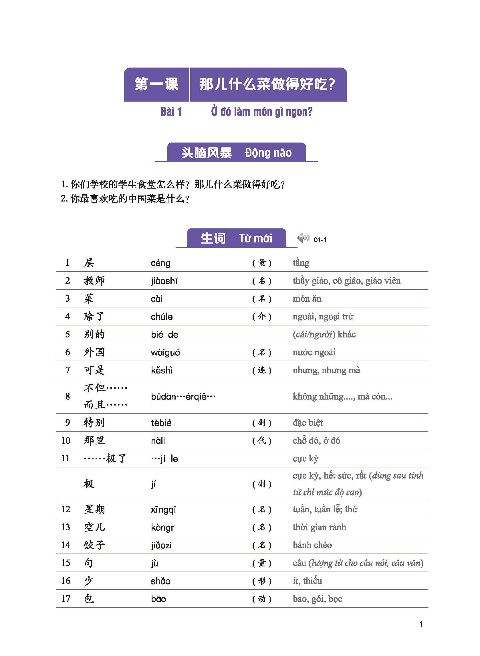 Giáo trình tiếng Trung giao tiếp tổng hợp dành cho người Việt Nam Cuốn sách có 15 bài, mỗi bài gồm: 1. Câu trọng điểm: Đưa ra trong bảng ở đầu tiên của mỗi bài,
