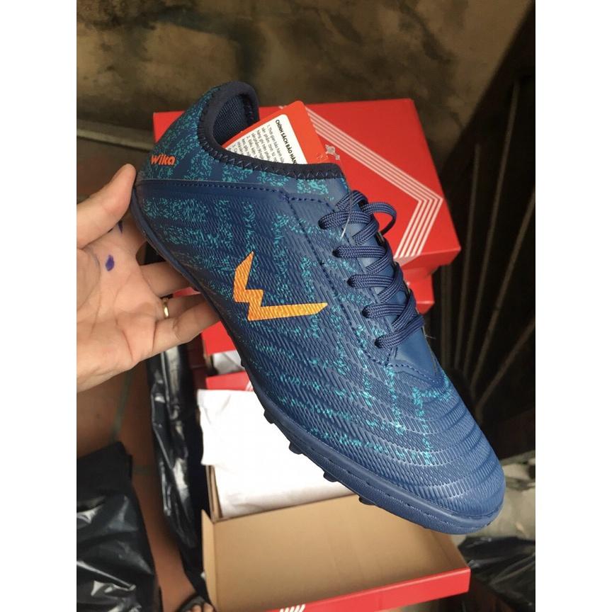 Giày Wika Flash cổ thun xanh biển Chất liệu giày đá bóng: làm từ da tăng cường khả năng chống thấm, thoáng khí Phần đế giày đá bóng bằng chất liệu 100% cao su, mềm