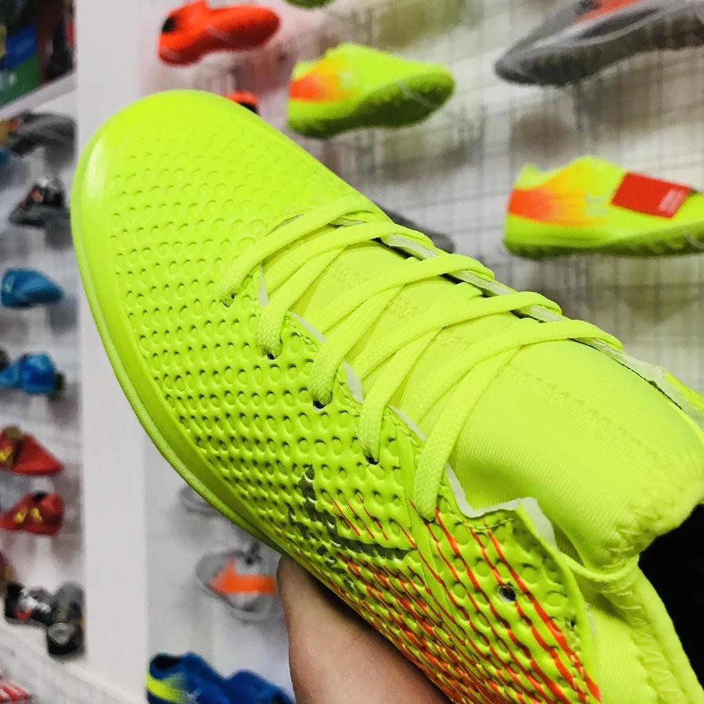 Chất liệu giày đá bóng: làm từ da tăng cường khả năng chống thấm, thoáng khí Phần đế giày đá bóng bằng chất liệu 100% cao su, mềm mại khi sử dụng, đế có rãnh