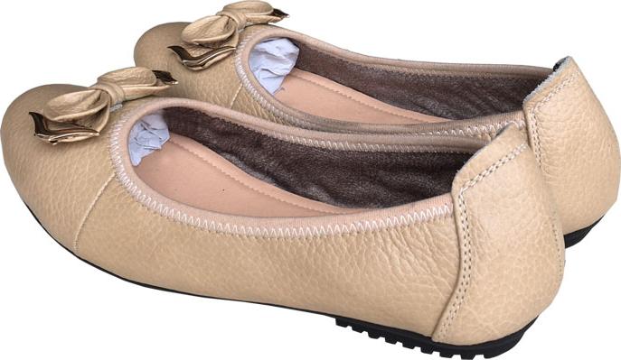 Giày Búp Bê Nữ Da Bò Thật Siêu Mềm Êm Chân VNXK GB01K Kem
