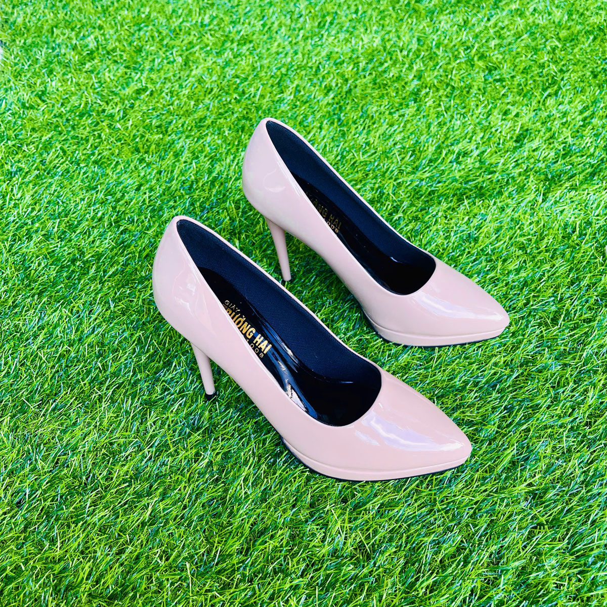✨Giày cao gót nhọn 10cm Trường Hải da bóng 2 màu đen, hồng phấn GCG135
