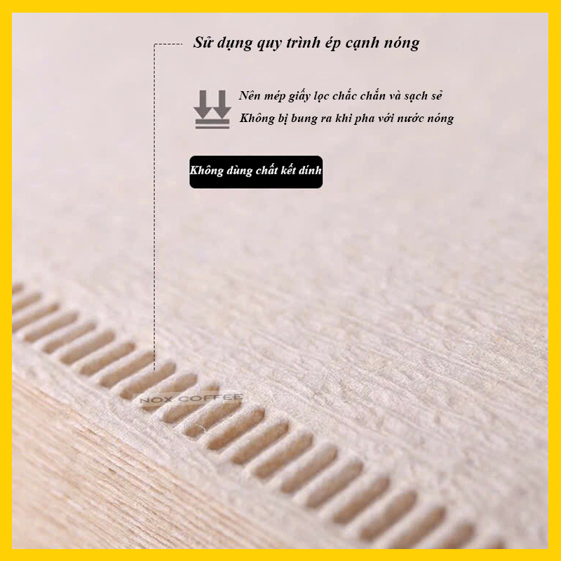 Sử dụng quy trình ép cạnh nóng, cam kết không dùng chất kết dính nên mép giấy lọc chắn chắn và sạch sẻ, không bị bung ra khi pha vơi nước nước