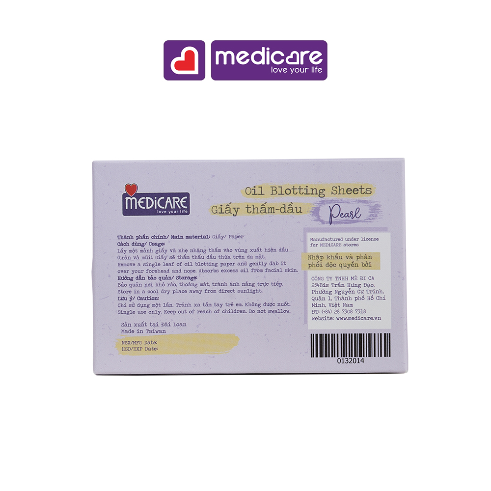 Giấy Thấm Dầu MEDiCARE 100 tờ THÔNG TIN SẢN PHẨM: • Đơn vị tính và Quy cách đóng gói: Một Gói – 100 tờ. • Nước xuất xứ: sản xuất tại Đài Loan.