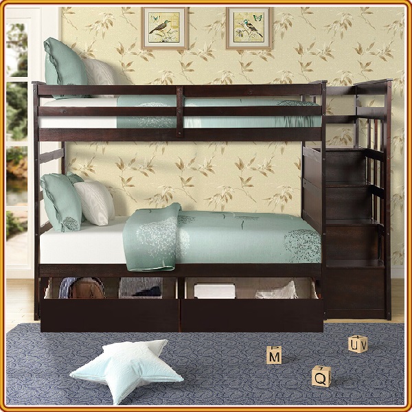 giường gỗ 2 tầng có nhiều ngăn kéo cho bé