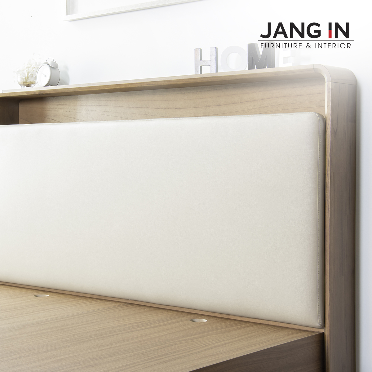 Phần đầu giường làm bằng gỗ xoan chắc chắn, gia công tỉ mỉ giữ nguyên vẻ đẹp của vân gỗ tự nhiên. Đầu giường có lót nệm êm bọc PVC màu kem giúp người dùng tựa lưng thoải mái, giảm va chạm đầu khi nằm.