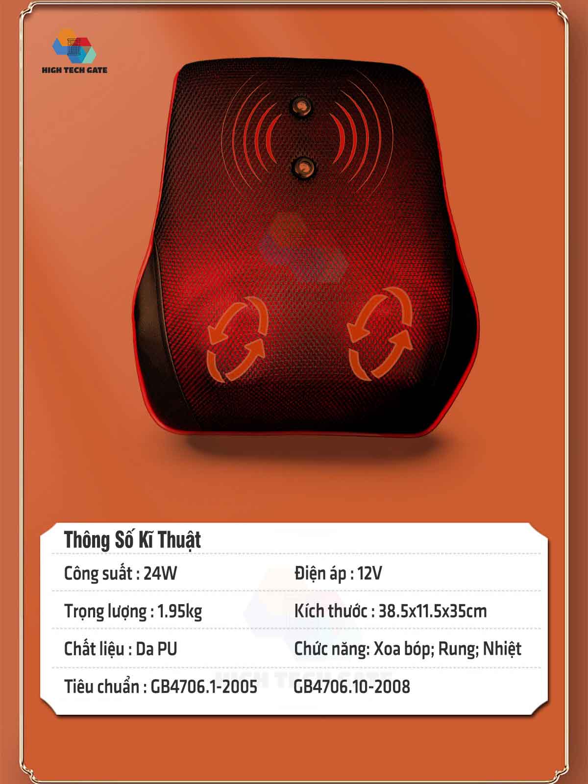 GỐI MASSAGE KLC-001 THÔNG SỐ KỸ THUẬT - Model: KLC-001 - Điện áp: 220V – 50Hz - Đầu vào: 12V - Công suất: 24W - Xuất xứ: KLC Việt Nam - Bảo hành: 36