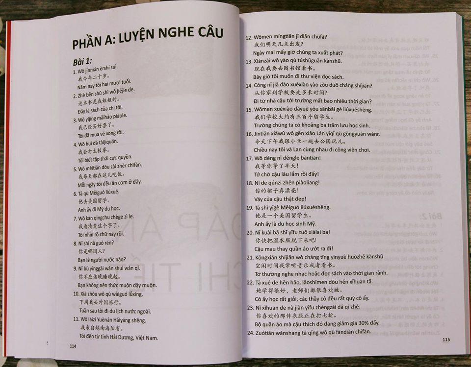 Nội dung sách gồm ba phần chính: luyện nghe câu, luyện nghe đoạn và luyện nghe theo tranh. Mỗi phần sẽ có các dạng bài tập khác nhau: điền trống, khoanh đáp án, phán đoán đúng sai, trả lời câu hỏi, nhằm nâng cao khả năng nghe hiểu bằng nhiều hướng tiếp cận, tránh gây sự chú ý, nhàm chán. Các câu hỏi ở mỗi phần cũng được sắp xếp theo cấp độ từ dễ đến khó, giúp người học đi từ giai đoạn làm quen đến thành thạo và cuối cùng là thuần thục.