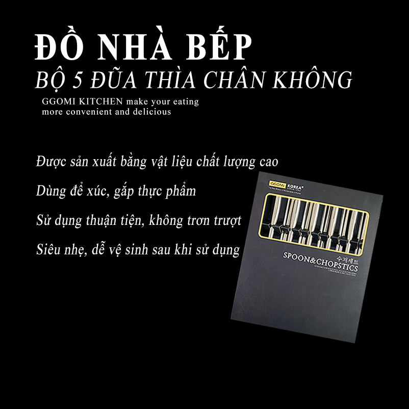 Bộ 5 đũa và thìa inox siêu nhẹ GGOMi Hàn Quốc MK335 gồm: 05 đôi đũa được + 05 chiếc thìa, phù hợp với gia đình đông người với thiết kế dập nổi và in logo thương hiệu GGOMi tránh hàng nhái, hàng giả, bề mặt sản phẩm được sử dụng bằng vật liệu thép không gỉ an toàn với sức khỏe của con người khi sử dụng sản phẩm. Với cấu trúc rỗng, hút chân không giúp sản phẩm siêu nhẹ, cầm nắm dễ dàng không bị trơn trượt đồ ăn trong quá trình sử dụng.