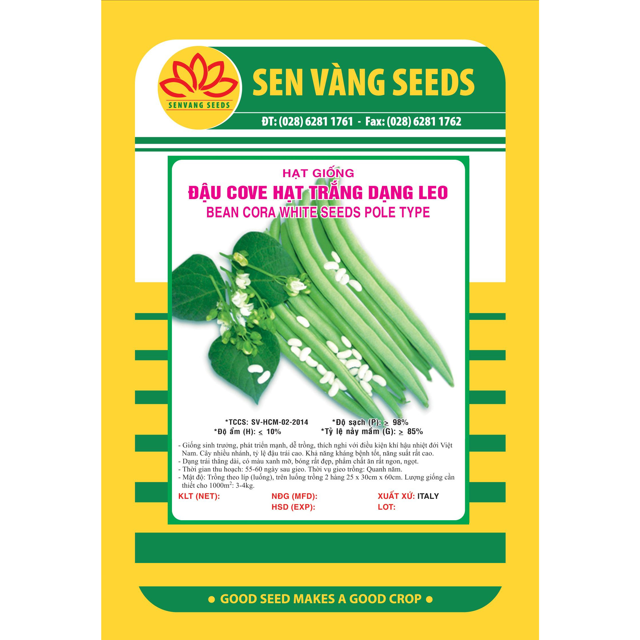 Đặc tính giống: Đậu cove hạt trắng dạng leo, giống sinh trưởng, kháng bệnh tốt, cho trái sớm, dạng leo trái dài 16-18m, trái màu xanh mỡ, bóng đẹp, ngọt và ít xơ, hạt trắng. Giống thích nghi với điều kiện khí hậu nhiệt đới Việt Nam, cây nhiều nhánh, tỉ lệ đậu trái cao.